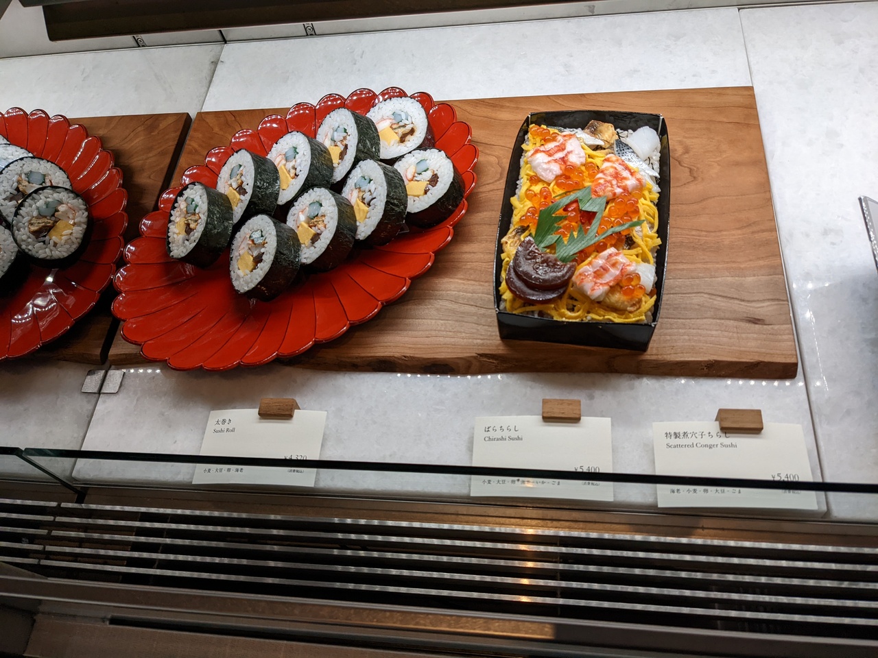 巻きずしが4500円なのは高い・・上のレストランで出されたサラダと同じのも売っていました。