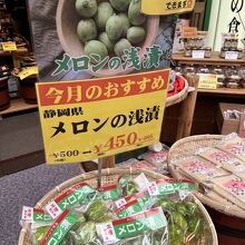 今月のおすすめ「メロンの浅漬」は 店内で 味見できます。