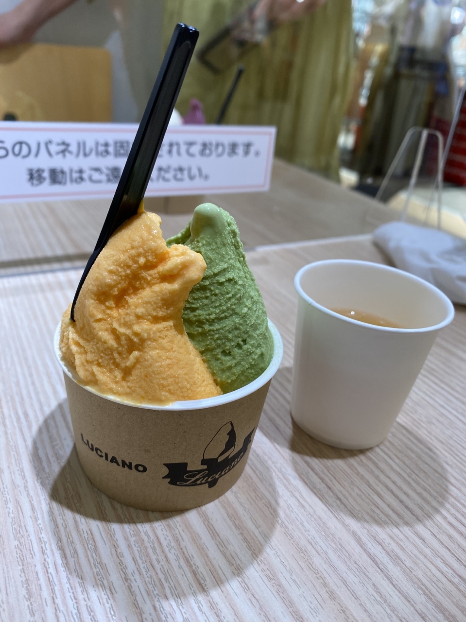 ユニクロが入っている建物の地下です。フードコートみたいになっていて、地下で座って食べられます。選んだのはにんじんミルクと抹茶。どちらも美味しかったです。価格も手頃です。ピスタチオなど追加料金のもあります。お買い物に疲れたら休憩にぴったり。