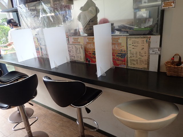 慶良間諸島・阿嘉島の前浜ビーチの前にあります。阿嘉島は昼食を食べられる場所が限られているため、結構混んでました。食事だけでなくスムージーを飲んでる女子も多かったです。屋内と屋外がありますが、屋内もエアコンはなく扇風機のみです。