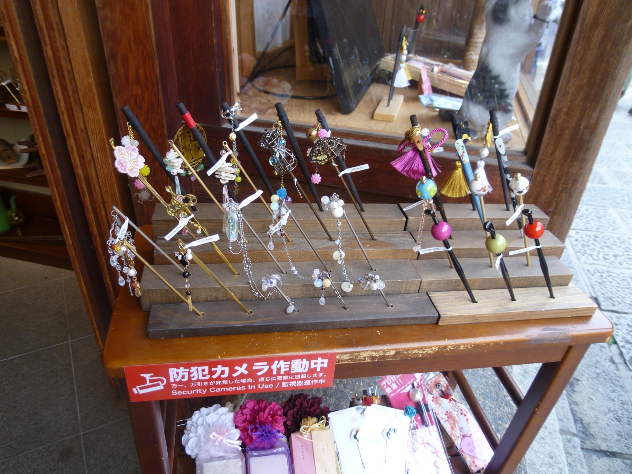 京都二年坂かんざし屋wargoは、二年坂を散歩していた際に立ち寄りました。簪(かんざし)の専門店でした。京都竹細工で作られた五重塔のかんざしはとても素晴らしかったです。店内にはトンボ玉のかんざしなどもあって見るだけでも楽しかったです。今どきはかんざしを実用で購入することはありませんが、観光の途中でこんなお店を見学するのも京都らしいと感じました。