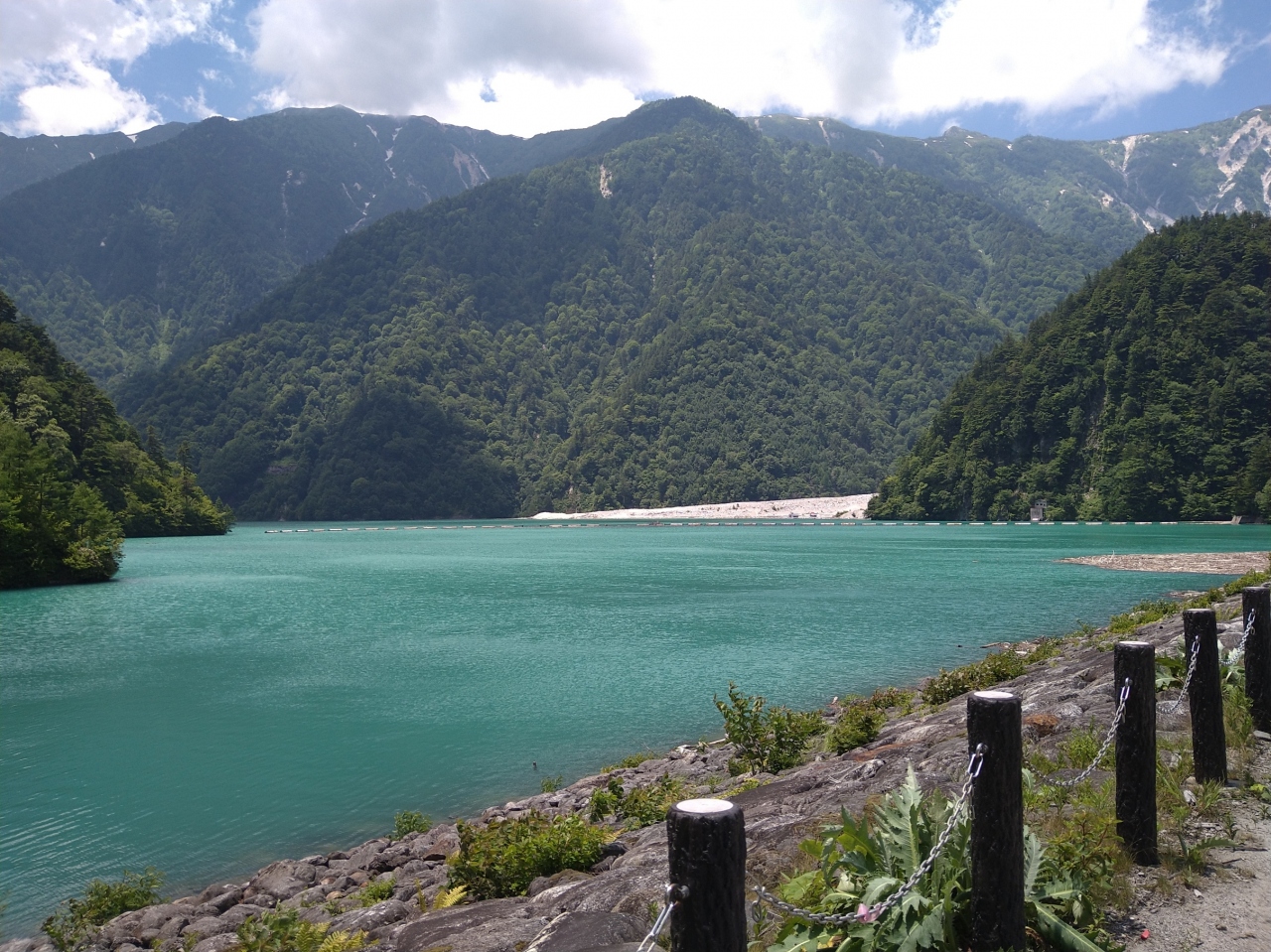 高瀬ダムへ続く道は、七倉山荘より先は一般車通行止めです。登山ではなく、信濃大町の観光でしたので、許可の下りている地元タクシーに往復をお願いしました。運転手の方が道中観光案内や写真撮影もしてくれ、思っていた以上に楽しく、珍しいロックフィル型式のダムを見れるという有意義な時間でした。調整池のエメラルドグリーンの湖面は大変美しかったです。通常、往復5000円のところ大町の補助(とくとくタクシーチケット)を利用で3000円でした。(令和4年限定2500枚数の発売)