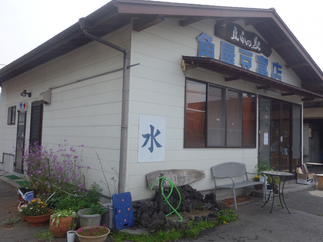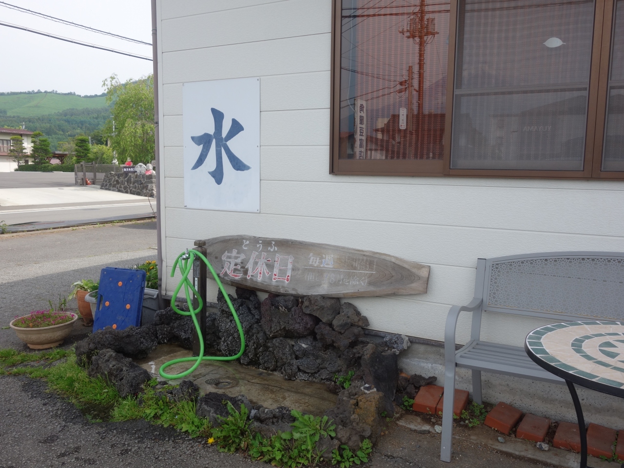 忍野八海のちょっと東側にあります。街外れです。忍野八海は湧水で有名ですが,ポリタンクに大量にお水をもらえるところはココぐらいしかありません。中池にも湧水があり,ペットボトルも売っているのですが,クルマをそばに着けるわけにもいかないので,大量にはもらえません。その点,ここは蛇口のすぐそばまでクルマをつけれるので,心配はありません。(ごめんなさい,お豆腐のことを書かなくて。)