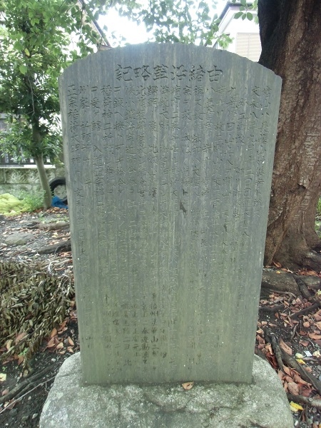 由緒を記した石碑があるのですが、漢字ばかりで解読は不能。