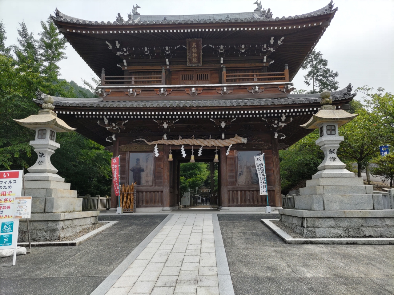 石鎚神社は、西日本最高峰石鎚山を神体山とする神社で、山麓に鎮座する本社(口之宮)、山腹の成就社(中宮)と土小屋遙拝殿、山頂の頂上社の4社の総称です。いずれの社も幾度か訪れていますが、今回は6月下旬、本社を参拝しました。神門の東の駐車場に車を停めて、坂道と石段の参道を10数分登りました。途中の急な階段には鎖が置かれているところもあり、暑い時期でもあり結構大変でした(10数年前には社務所近くにある駐車場に駐車)。本殿参拝後、北側の展望所から西条の町並み、瀬戸内海をのぞむことができました。