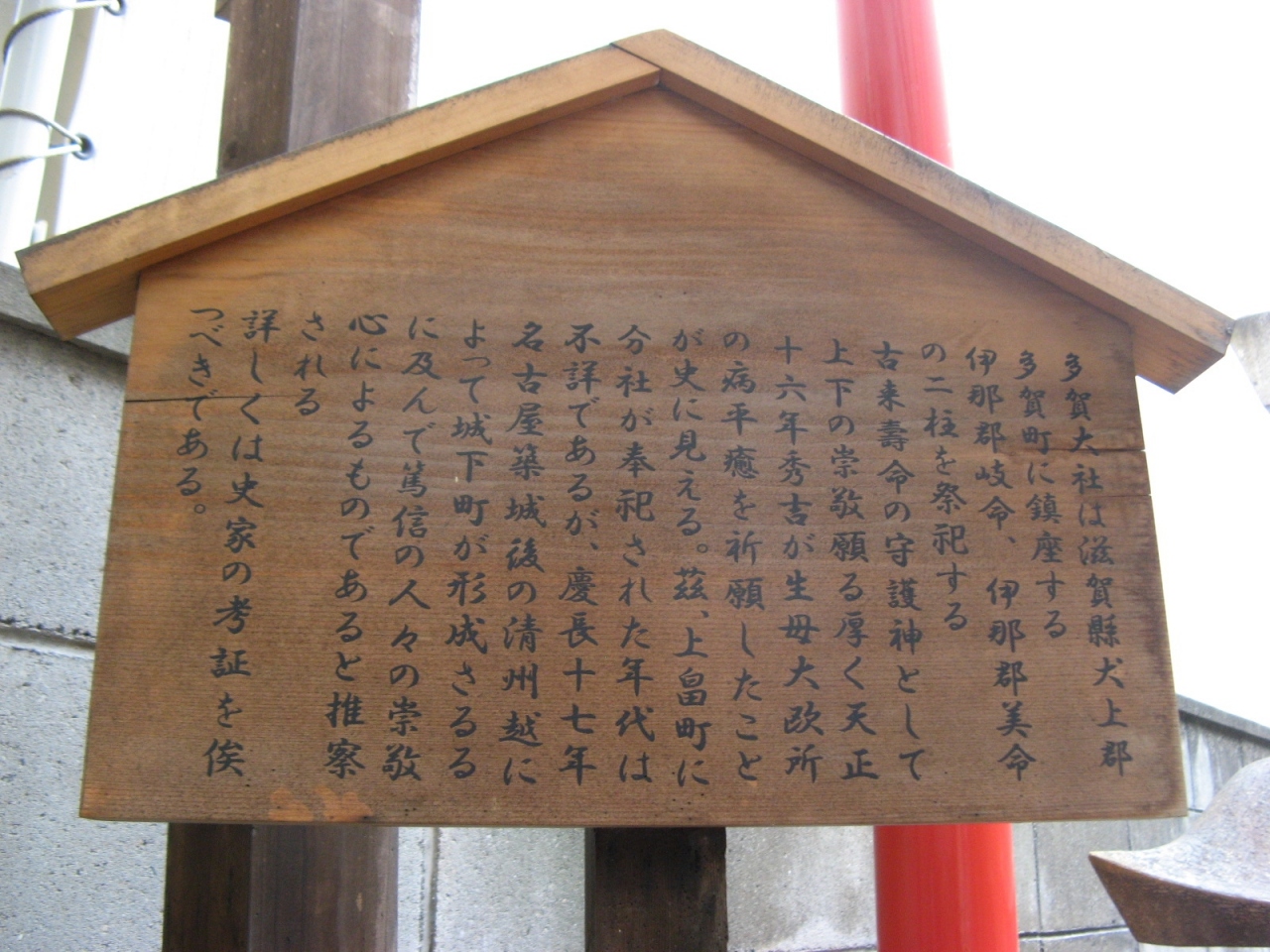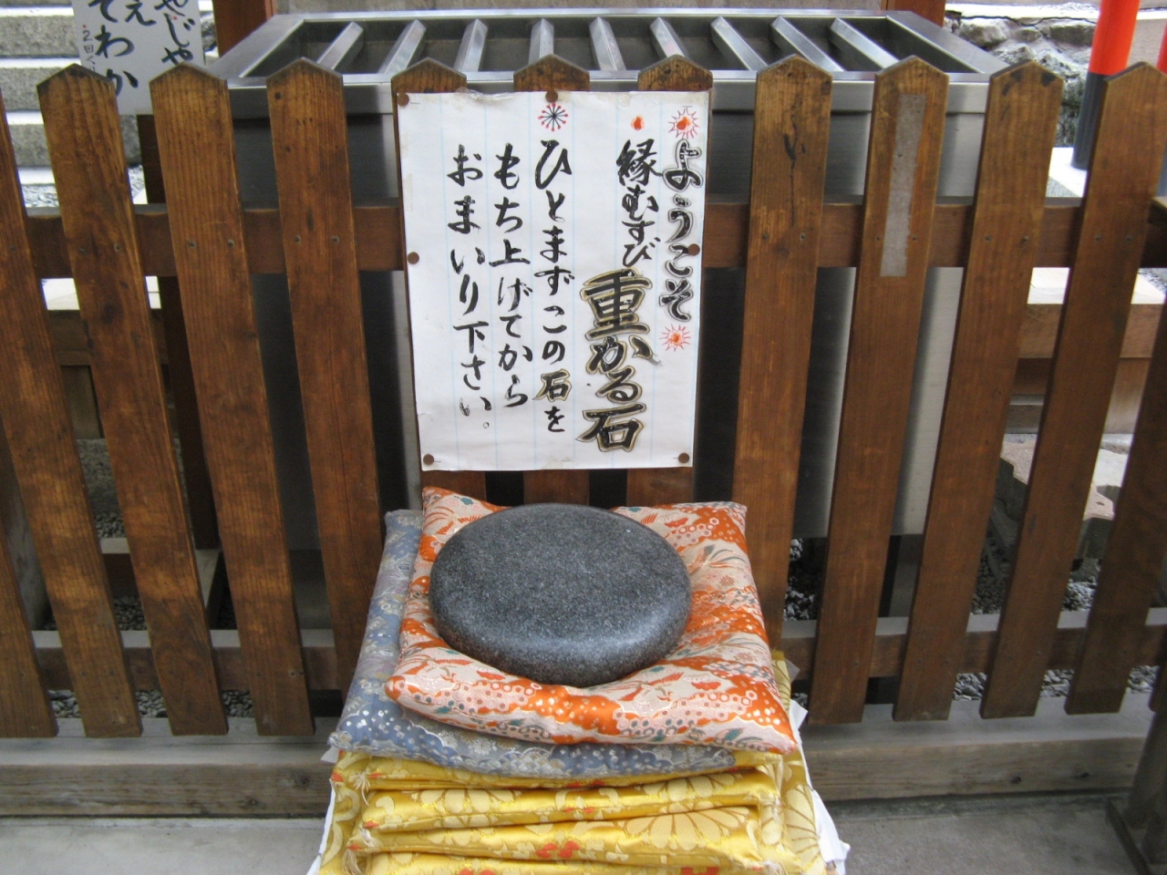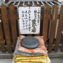 円頓寺本町商店街に鎮座されています。現地にあった由緒書きによると、鎮座は遠く神代にして伊那那岐・伊邪那美の大神をお祀りし、延命と縁結びのご利益があるとか。小さな神社で拝殿の前には、全ての願いごとが、石を持ち上げた時の軽・重の感覚で霊験を受けることができる“おもかる石”と言う平たい大きな石があり、縁結びに対してお告げが得られるようなので試されては如何でしょうか。
