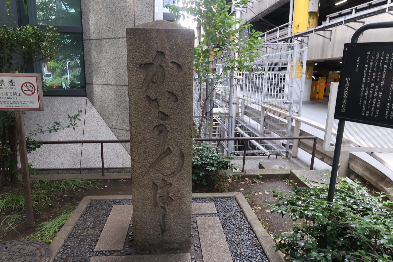 パティスリー イーズの席待ち時間に、周辺を散策しました。明治元年に「海運橋」と縁起を担いだ橋名へと改称、石造アーチ橋へと架け替えられた橋の親柱だけ、植え込みの中に残されていました。かつては東に擬洋風建築・第一国立銀行があり観光名所だったようです。その後、楓川は埋め立てられ、橋は撤去され、首都高の下に、「かいうん」と大きく刻まれた石橋の親柱が2つ保存されています。開運祈願。