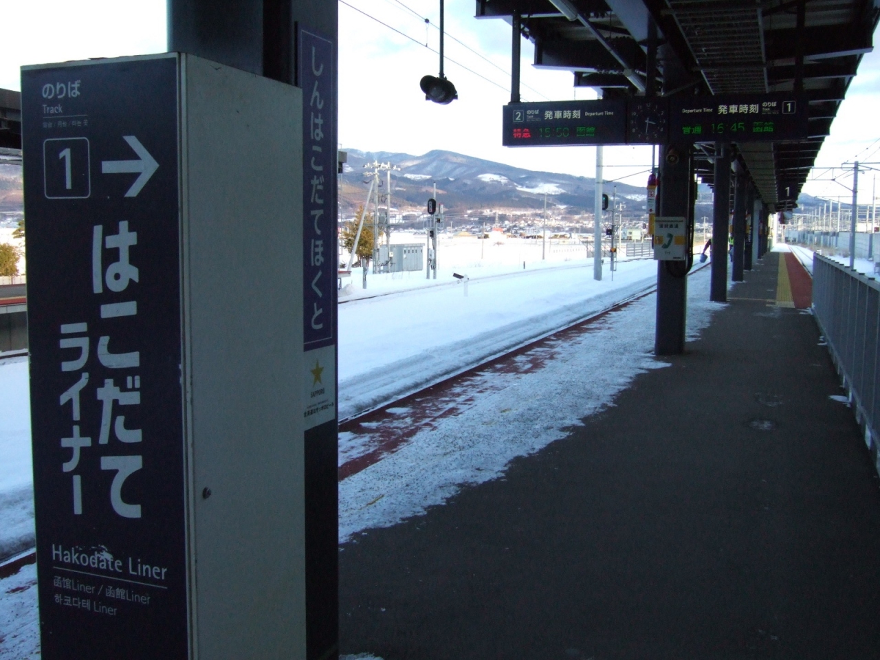 乗換改札正面のホームからは特急が出るのに、はこだてライナーはちょっと冷遇されている感じです。札幌開業までのショートリリーフなので仕方ないのかな・・・