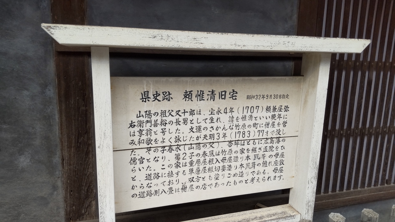 幕末の儒学思想家と言えば長州、萩のイメージが強いのだが、塩田で栄えた瀬戸内の湊町である竹原にも当時の生活の足跡である住居が残っている。第二次大戦戦前に広島県の史跡となり、戦災に遭わずに済んだようだ。