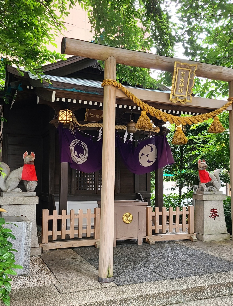 名前の由来はお茶の木がたくさんあったからと言われていますが現在はビルに囲まれた場所にありました。