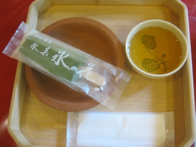 他にも氷菓や冷たい飲み物なども販売されていて、私は店内飲食用に、アイスバーの「氷の花」抹茶味(ほうじ茶付き410円)をオーダーしましたが、濃厚な抹茶の味がとても美味しかったです。特に京都の暑い夏においては、休憩スポットとしても認知されておくと良いです。