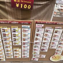 ワンコイン 1袋100円のあられシリーズのお品書きが