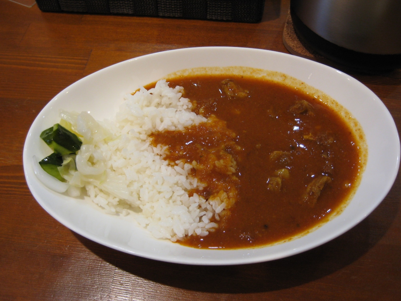 自慢の「玉ねぎビーフカレー」をいただきました~、今風のスパイシーカレーではなくさらりとしたあっさり目の味付けです。