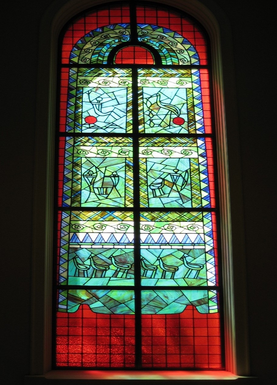 最後に西階段手前の壁面に在る大きなステンドグラスの窓は採光がとても美しいです!。