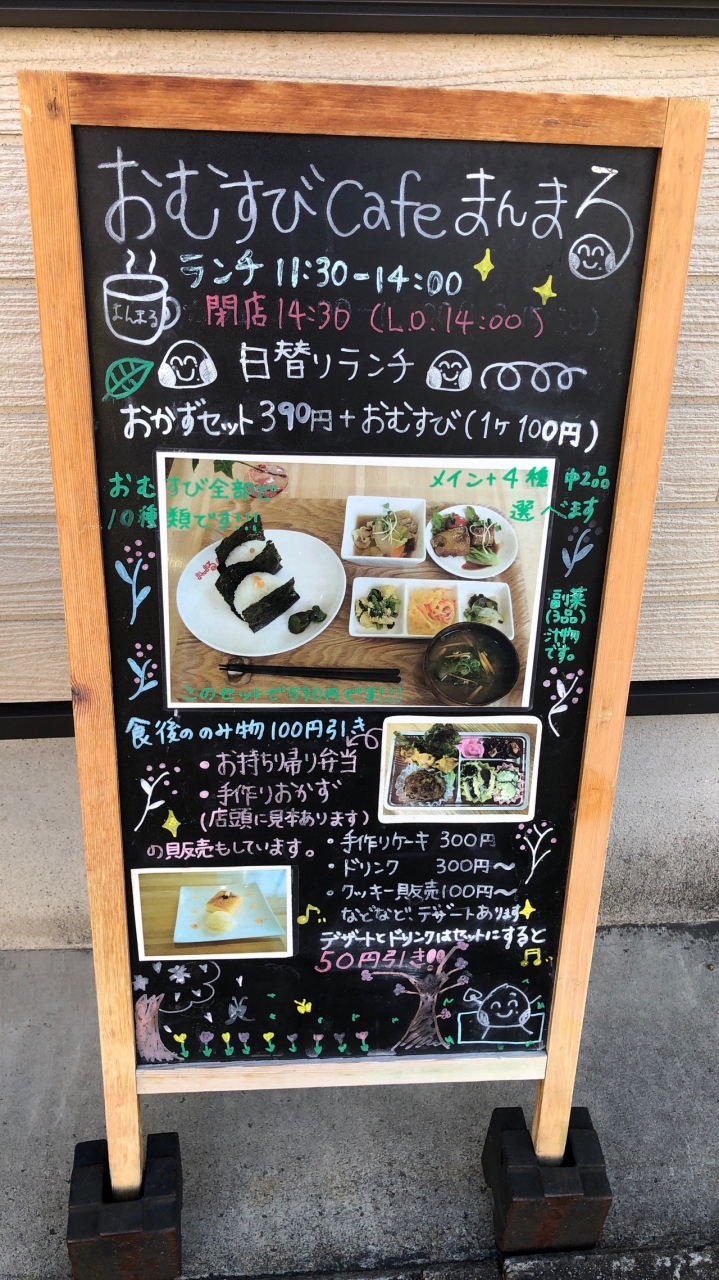 地下鉄太子橋今市駅の近くにある小さな店です。11:30~14:00のランチタイムに、おむすび定食がいただけます。390円のおかずセット(メイン1品・副菜3品)に、100円~の好きなおむすびを追加していく方式です。