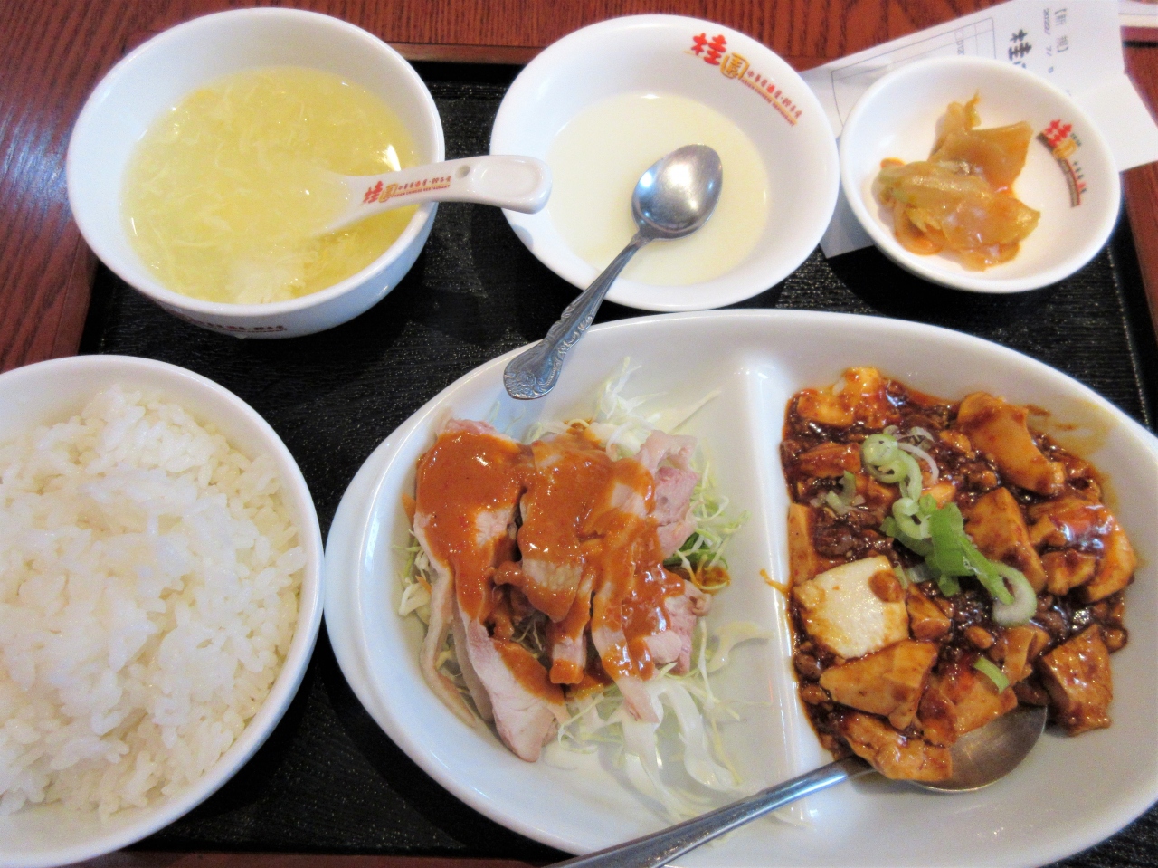 他に玉子スープ、ライス、搾菜、杏仁豆腐がついていました。メニューにはさらに「小鉢」と書いてあったので、女性店員に聞くと、「これです」と麻婆豆腐と棒々鶏が入っているお皿を指しました。これが「小鉢ですか?」ときくと、「はい、そうです!」と言い張りました。”大陸”の人だったので、それ以上の確認は諦めました。