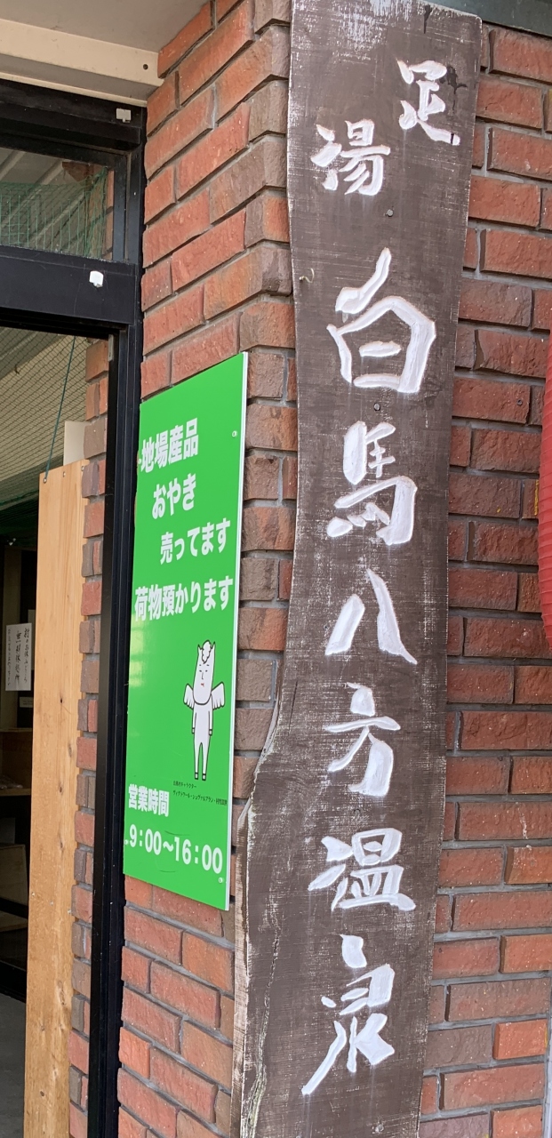 駅改札から徒歩一分弱、駅前広場のコ-ナ-部にある無料の足湯。白馬八方温泉から引湯しているそうだ。又、観光案内やちょっとした土地の名産、手作りの土産物や、荷物預かりもあるので、ひょっとすると駅のコインロッカ-より安いかもしれないが営業時間に要注意。おやきも食べられると書いてあった。時間があるなら足湯でのんびりも良い。
