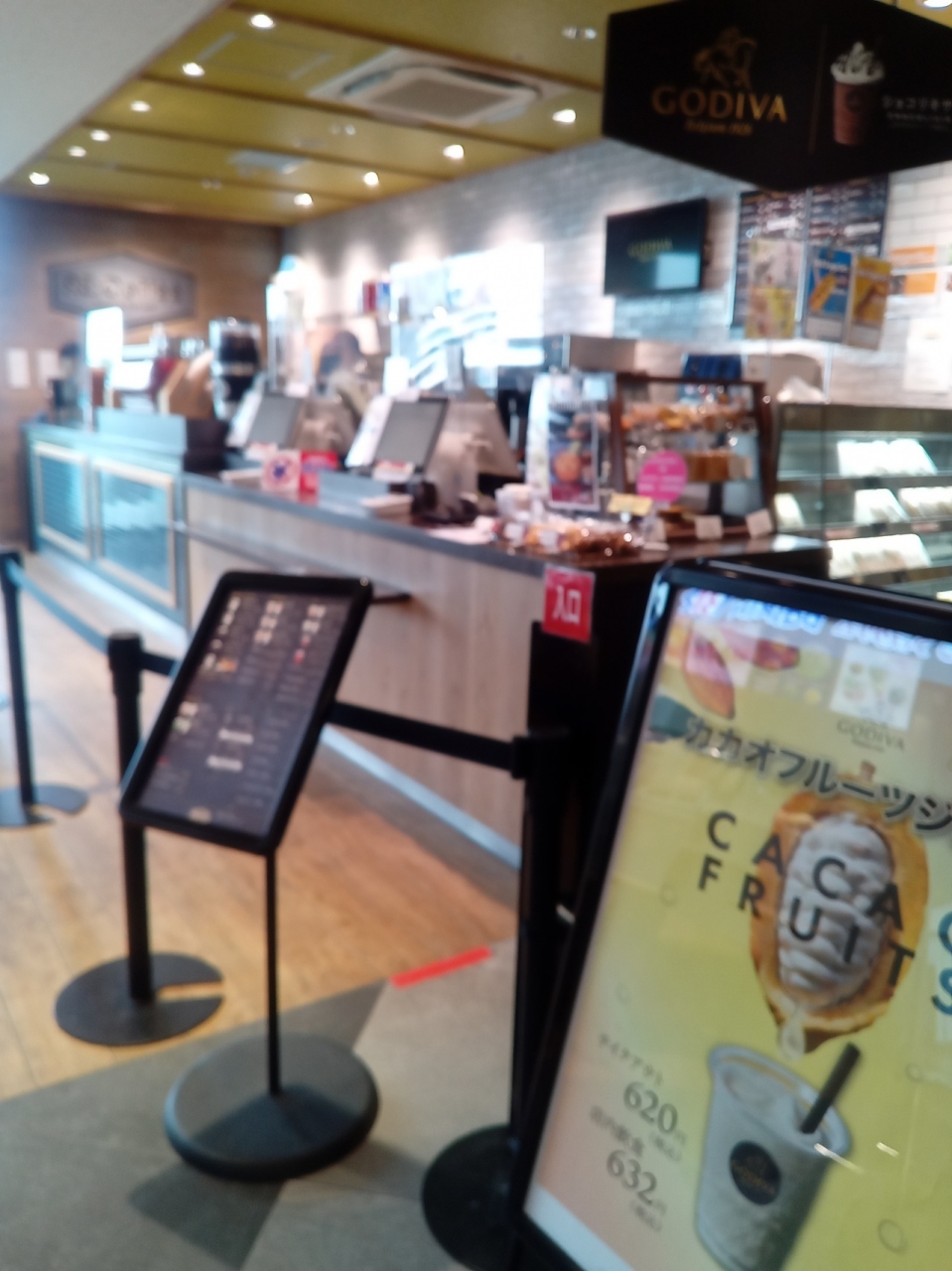 神奈川県・海老名の『海老名サービスエリア(下り線)』にある『リコーヒー 海老名サービスエリア(下り線)』では、コーヒーのほかに、『GODIVA』のメニューも販売されていました。GODIVA好きな方に嬉しいカフェです。