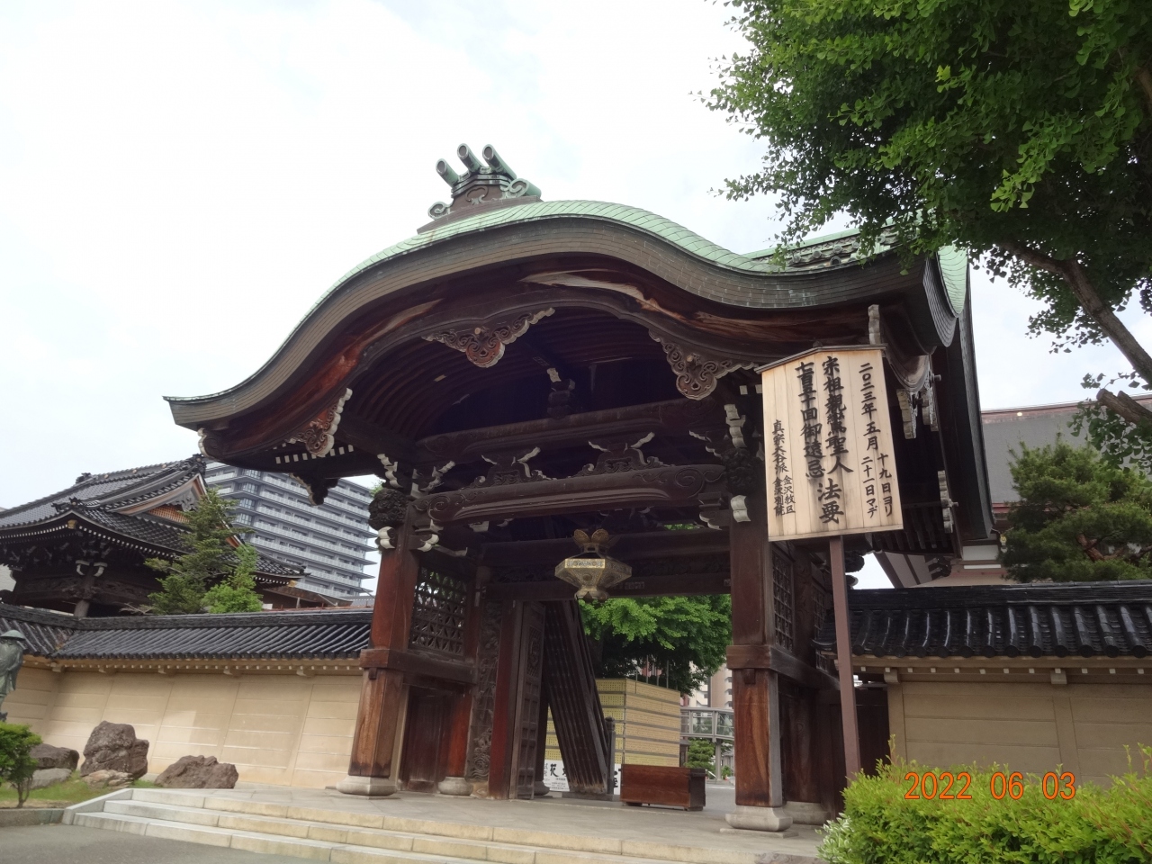 金沢駅から歩いて10分ほどの場所です。ものすごく広い敷地の大きな寺院でした。