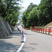 坂の下に大きな石鳥居があり、これが霊山護国神社の鳥居です。けっこう傾斜のきつい坂を必死に上り、神社と歴史館を訪ねてみました。上で工事があるのか、大型のダンプカーがひんぱんに坂道を降りてきて落ち着きませんでした。ねねの道とは打って変わってのんびり散策する感じの道ではないですね。