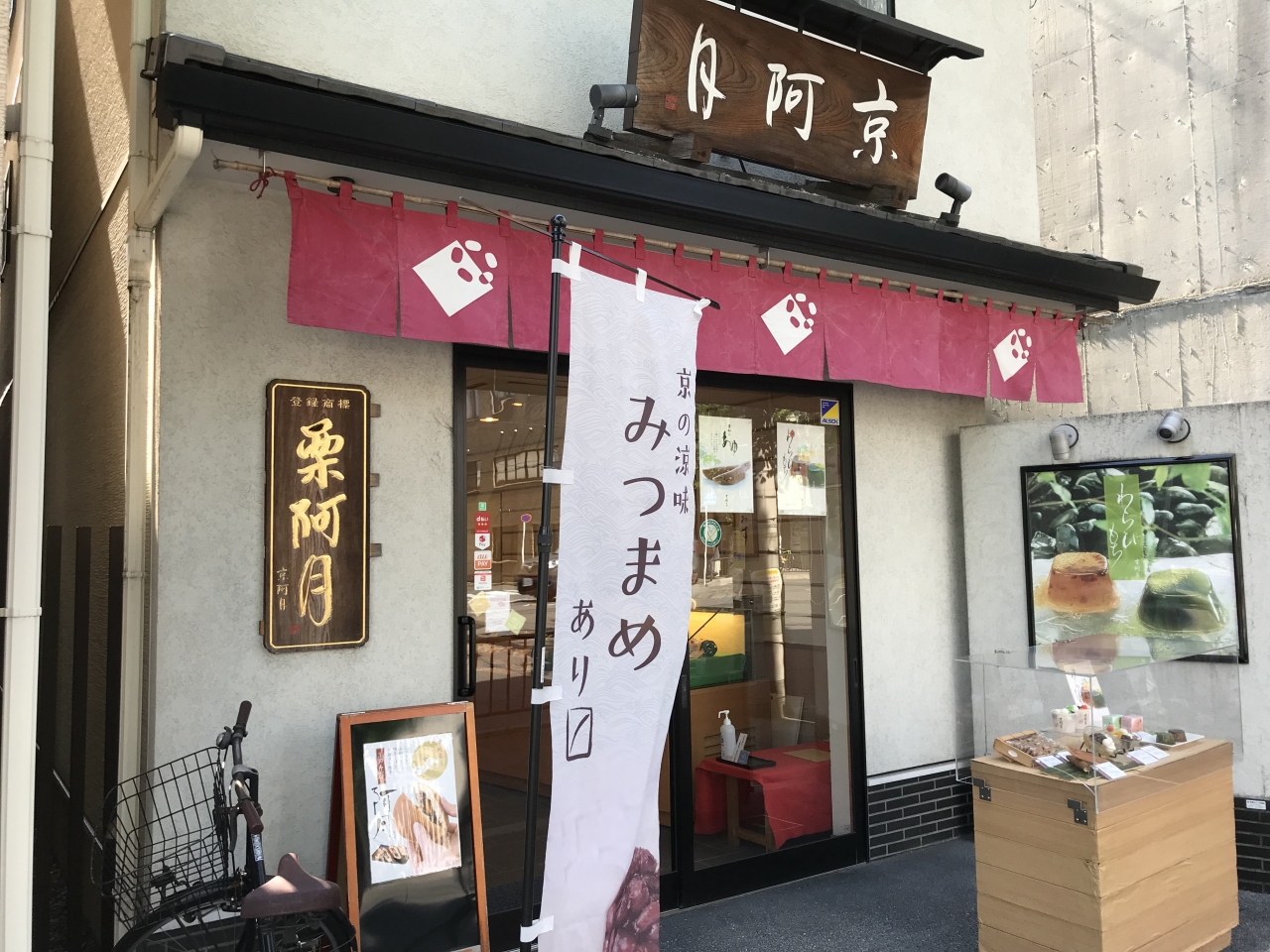 京阿月 本店は、地下鉄 北山駅から南へ徒歩15分くらいの場所にあります。1840年創業の和菓子の老舗店です。こちらのお店はJAF会員証を提示すると10%OFFになるお店でした。チーズみかさと小豆と抹茶2種類のわらび餅を購入。チーズみかさは、ふんわりとした生地の中に滑らかなチーズクリームがあり、その中にはラムレーズン。ふんわりとして美味しい生地に濃厚なチーズクリームの塩気がよく合っていました。わらび餅は、良く冷やして頂きました。小豆は蜜漬けを散らしてあり、抹茶は風味がとてもよくどちらもおいしかったです。