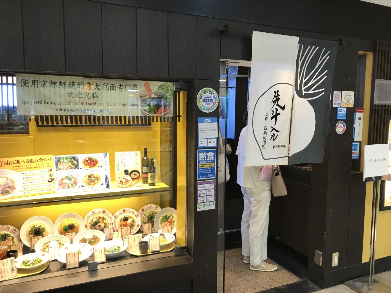先斗入ルは、京都駅の駅ビル11階にあるお店です。今回頂いたのは、九条ねぎと海老とたらこバターの京風パスタ、合鴨と賀茂なすと生麩の和風ミートソース 山椒風味のハーフ&ハーフ。京野菜の食材を京都風にアレンジしたパスタを2種類注文。たらこバターは、バター風味に海老とたらこがとても調和していました。和風ミートソースは、生麩がたくさん入っていて山椒は効いていてアクセントになっていました。どちらも美味しかったです。店内は雰囲気も落ち着いていて、ゆっくり食事を楽しめました。スタッフの方たちの接客も良かったです。