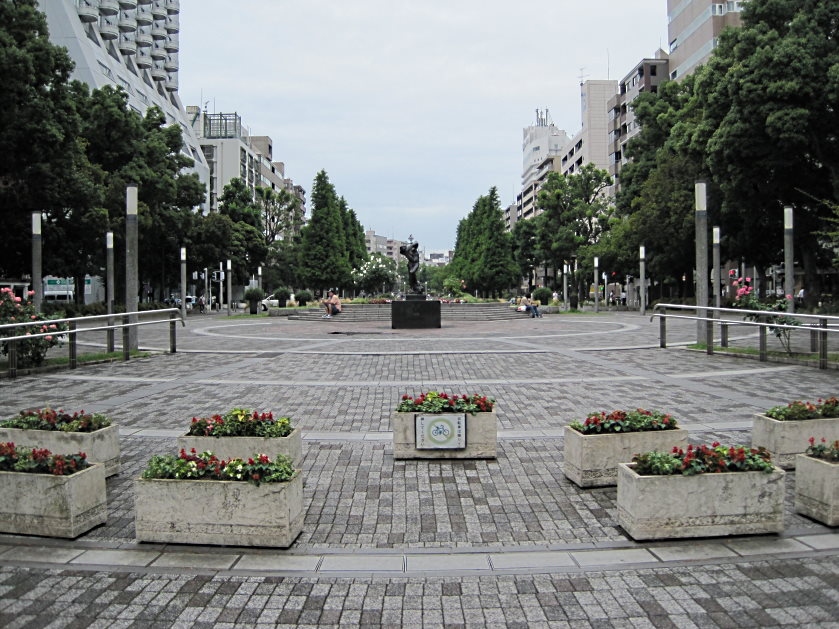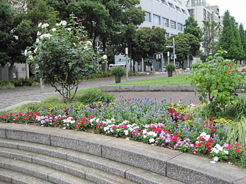 関内駅駅前にある大通公園、横浜の中心地にあって緑が多く、花壇に咲く花もとても美しいです。