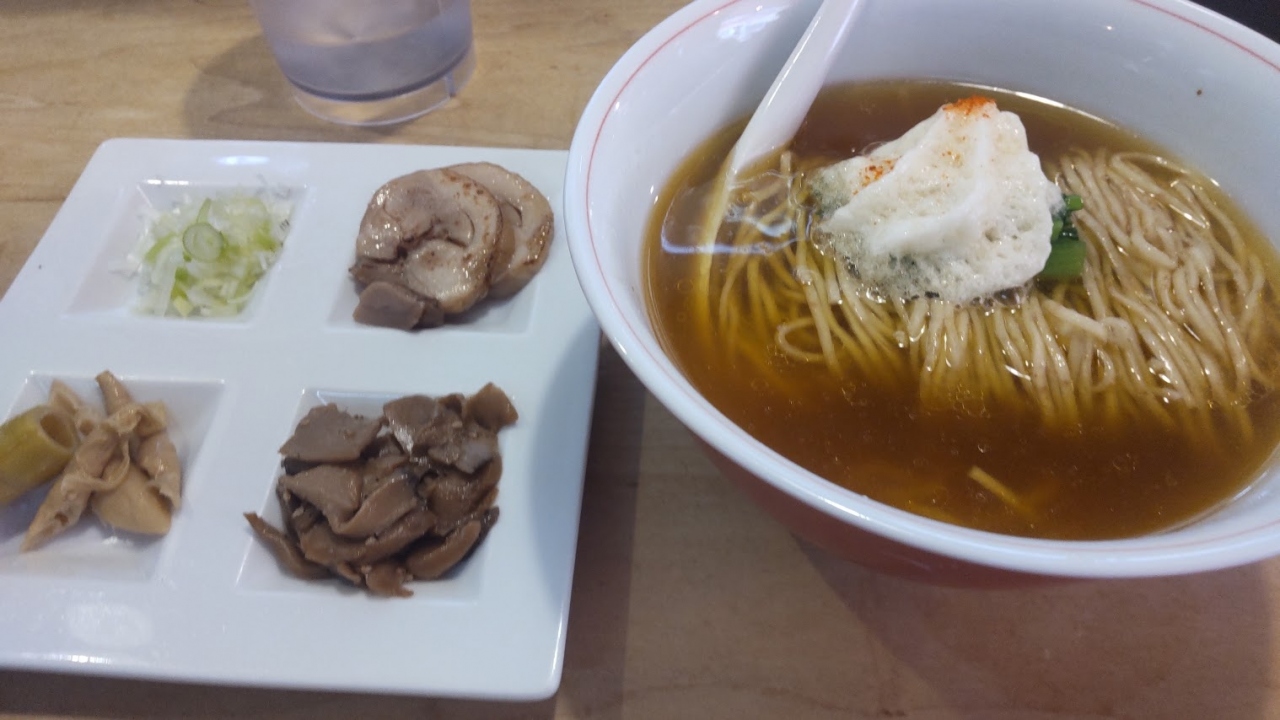 後楽園駅から徒歩6分ほどの場所にあるラーメン屋さんです。マンションの1階にあり、魚雷が目印です。お昼時は大体並んでいて、15分ほど待つと入ることができます。カウンターもありますが、二人席も3組ほどが入ることができる広さです。丁寧にスープを作っていて、深みのある醤油ラーメンといった感じです。トッピングは3種類まで選ぶことが出来ます。男性には量が少し物足りないかもしれません。