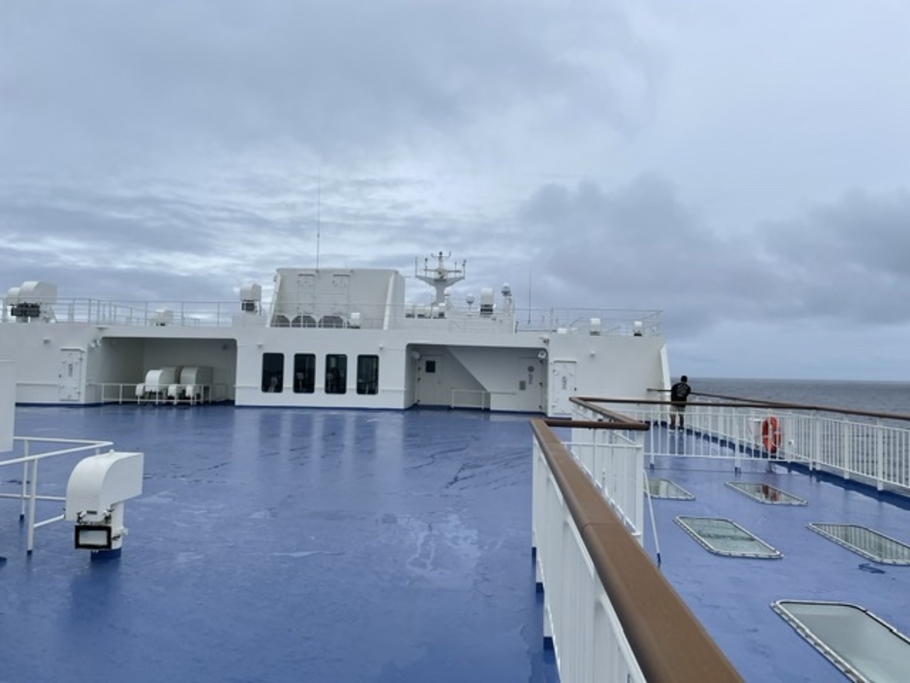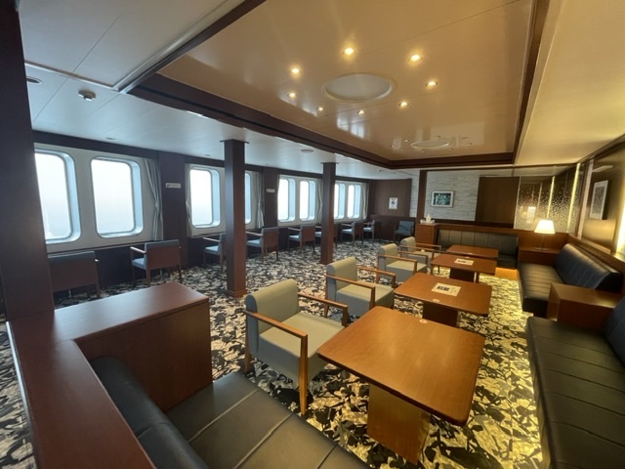2021年に就航した新しいフェリーです。船独特の重油の臭いや騒音もなく、静かな船です。