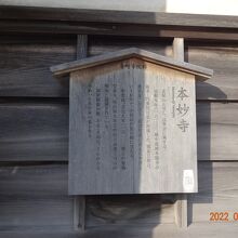 寺町通りに面しています。通りの北側です。本堂がある敷地は広くはありません。境内は素朴な印象を受けました。1623年に、越中高岡本陽寺の弟子・円重院日覚が創建したそうです。境内には、加賀騒動の際のお貞とかかわりのあった半田家の墓があるそうです。