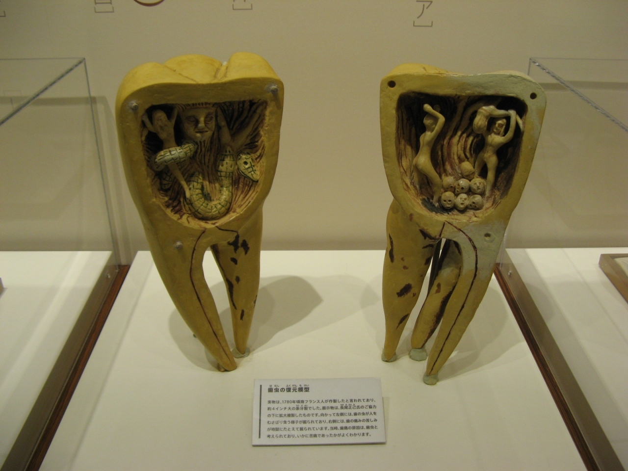 丸の内の「愛知県歯科医師会館1階」にあります。歯を対象にしたという珍しい名前の博物館に魅かれて入館してみました。館内には昭和初期のレントゲン装置や治療椅子と器具、虫歯治療の歴史や歯の健康についての展示や解説資料があります。中でも、1780年頃にフランスで造られたという虫歯の復元模型が気味悪くて面白かったです。入館料は無料です。