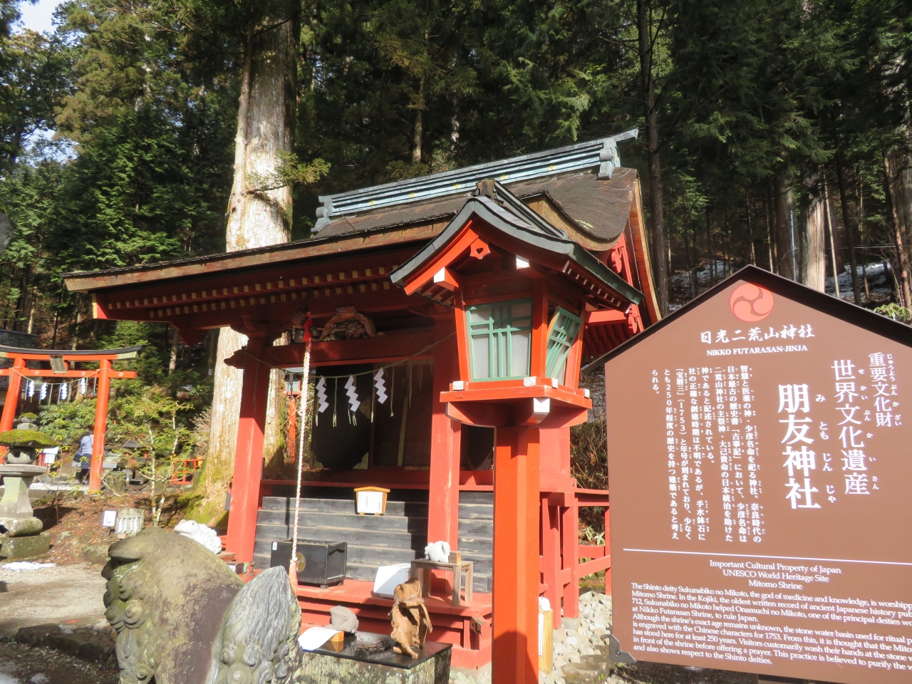 二荒山神社の神苑にあるので有料のエリアにあります。学問の神様で「みとも神社」と読むそうです。私は正直読めませんでした。神社の周りには一言カエルなど何故かカエル像がたくさんあります。探してそれぞれお願い事をしてもよいかと思います。朋友神社のまわりには四葉のクローバーがあるところや霊泉など幸運になりそうなところが集まっていました。