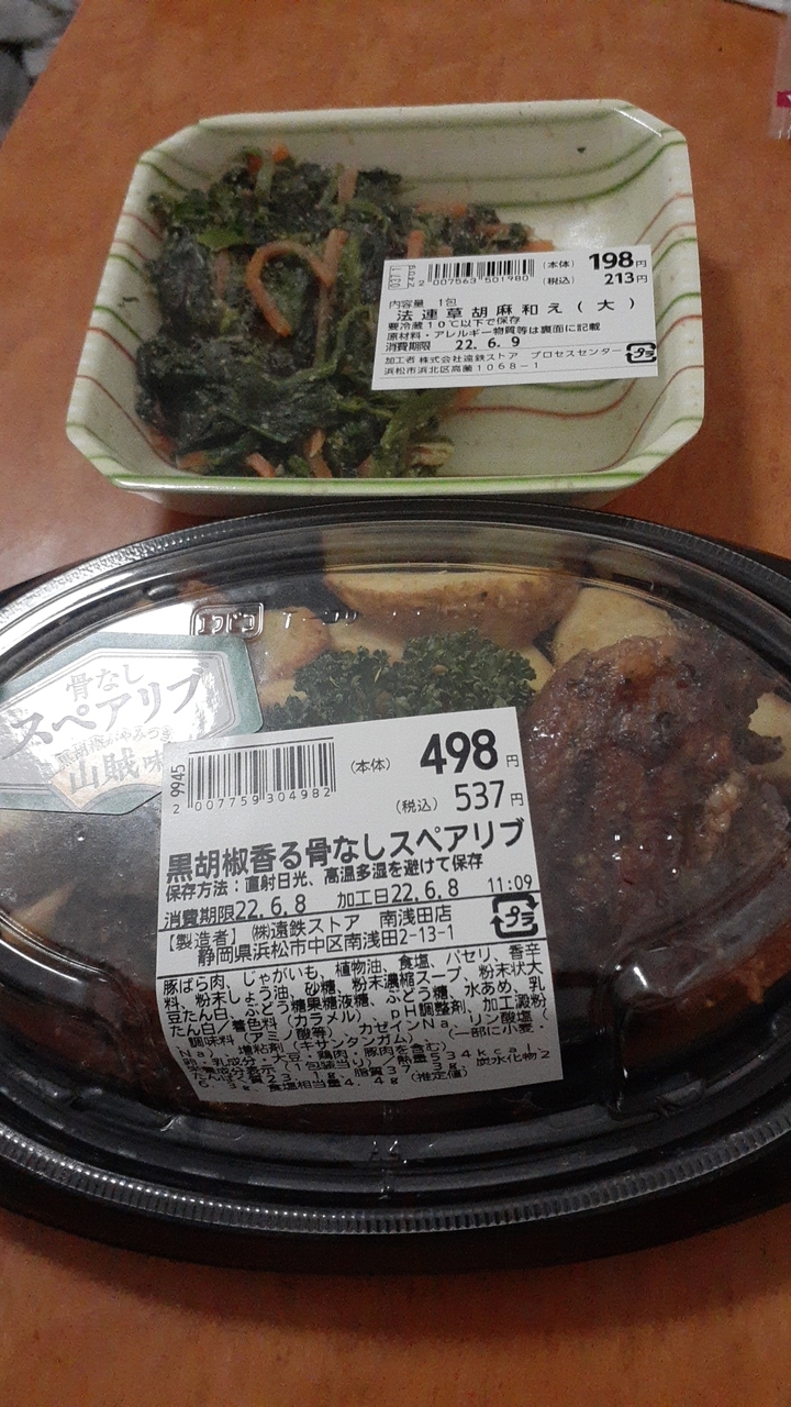 当日は「サクッとアジフライ」という名のアジフライと「黒胡椒香る骨なしスペアリブ」を購入しました。