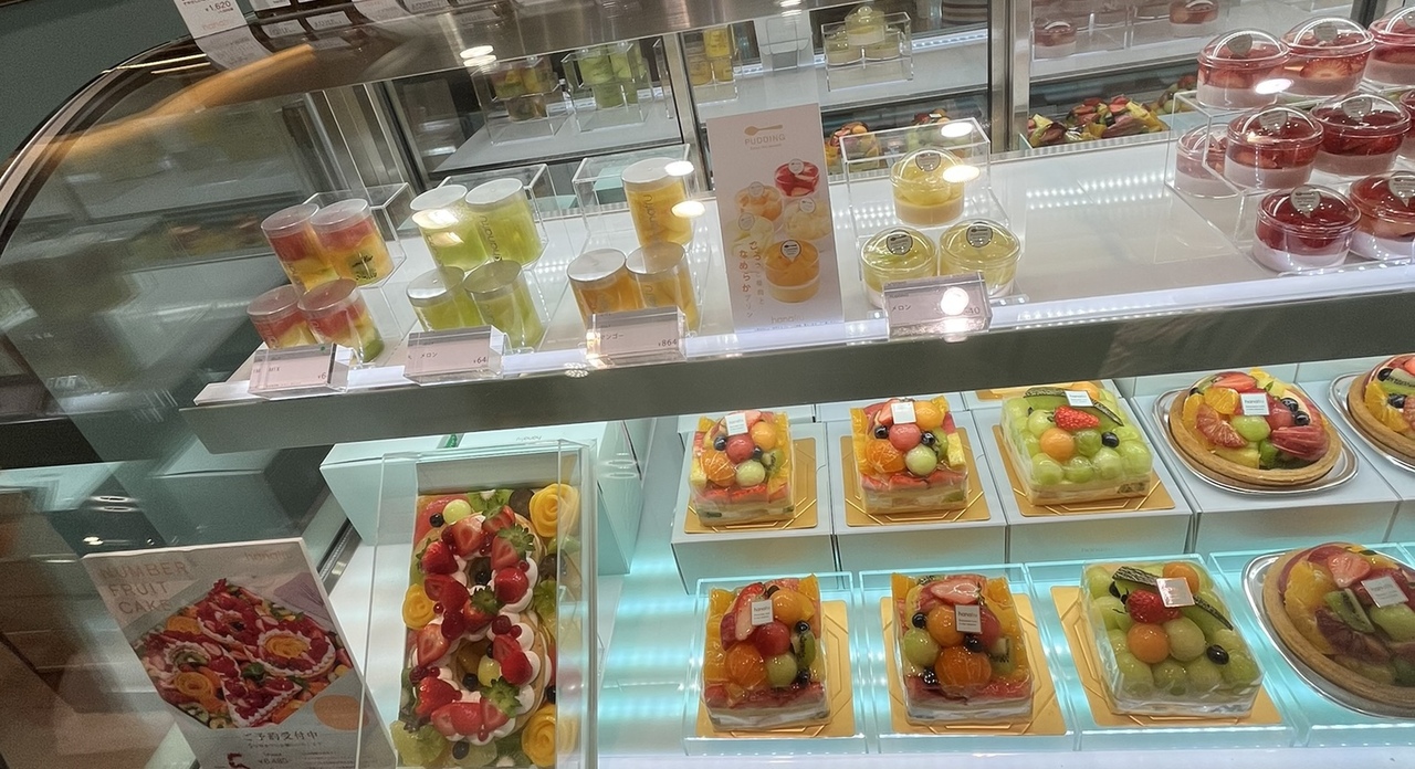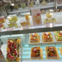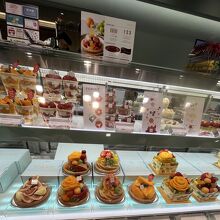 店内ガラスショーケースには 「マンゴーバラタルト」「hanafru デコレーションタルト」などが並び