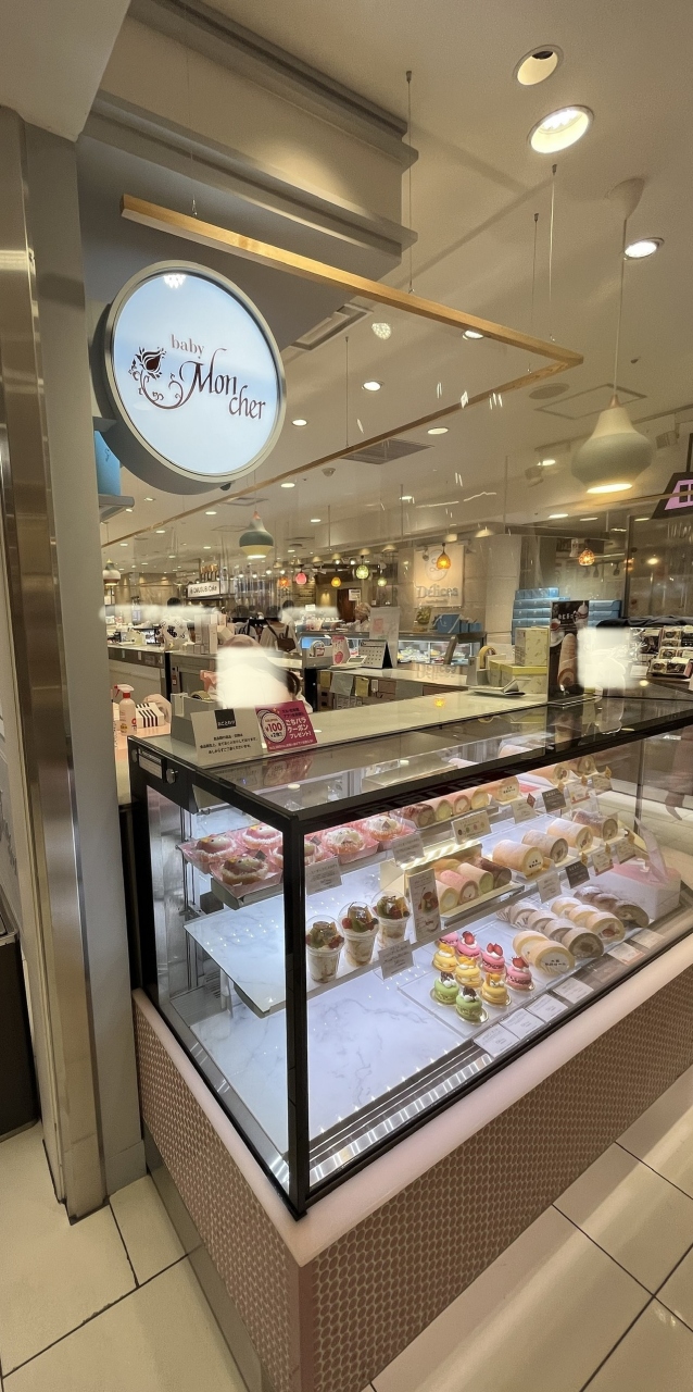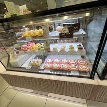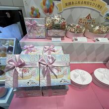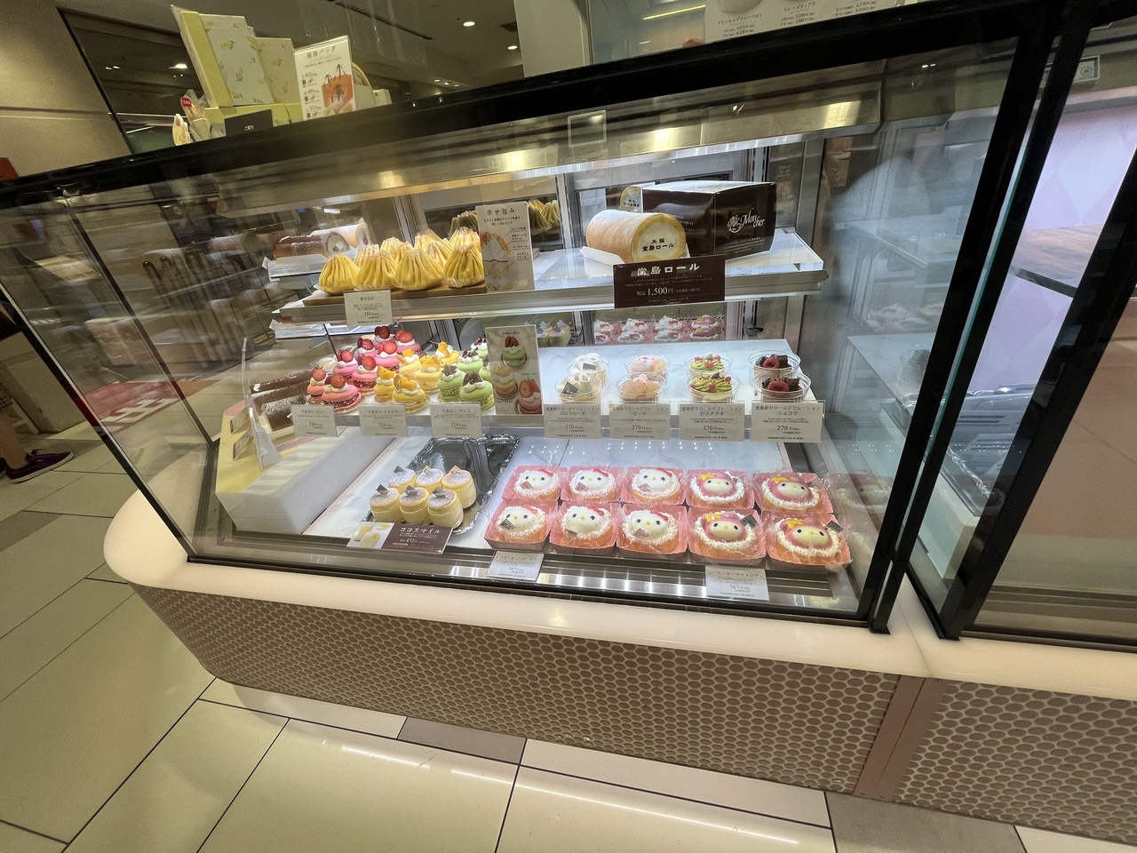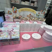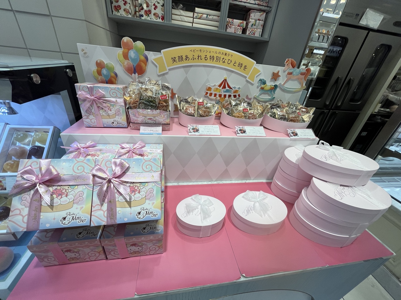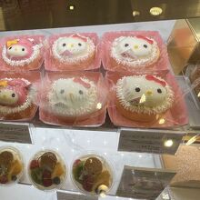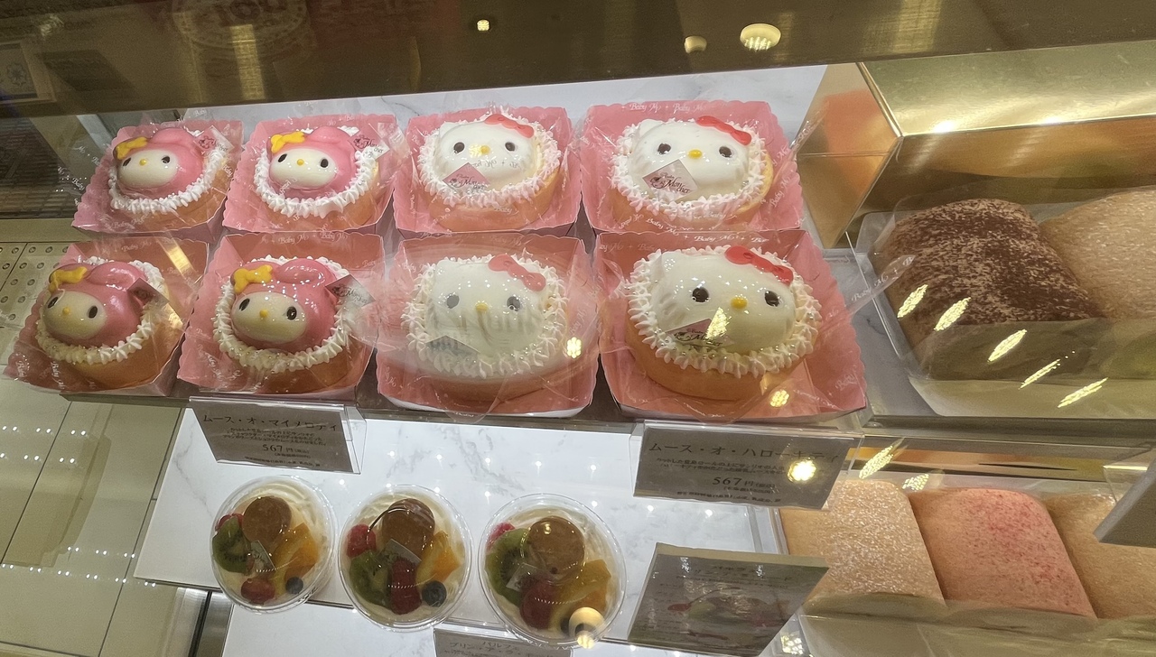 店内ガラスショーケースには 「ムース・オ・マイメロディ」「ムース・オ・ハローキティ」が