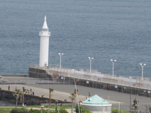 江の島にある灯台です。白い灯台でとてもよく目立ちます。灯台へは湘南港の散策で歩いてたどり着けます。3メートルほどの防波堤の上がさんさk路になっています。釣りの人もいます。遠景は江の島の展望所などから見えますし、弁天橋などからも見ることができ、江の島らしいスポットの一つです。