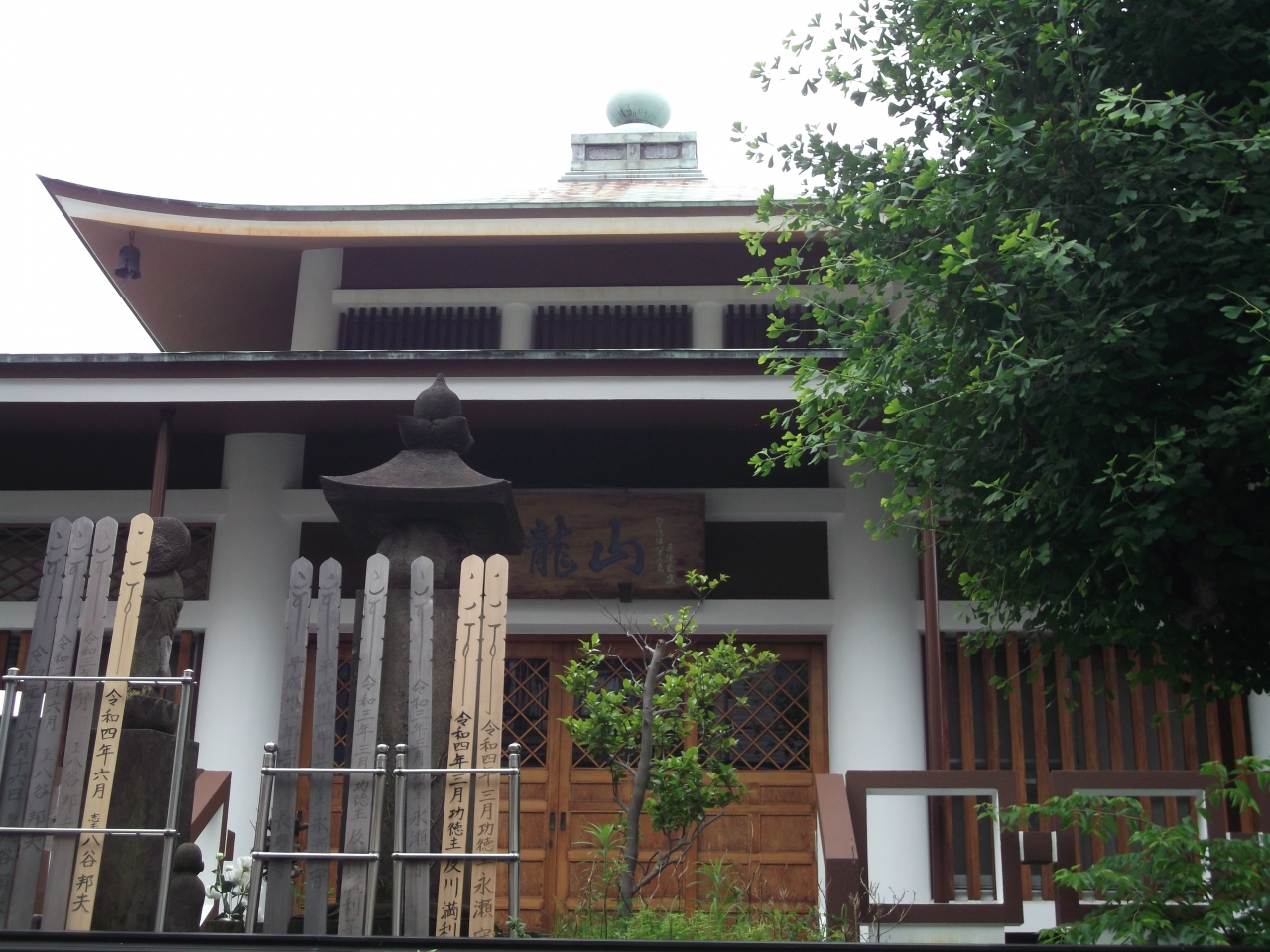 地下鉄森下駅から歩いて3分ほどのところにある曹洞宗の寺院です。山門をくぐり境内に入ると近代的な造りの立派な本堂がありました。お堂は、太くて白い柱がとても目立って見えます。境内の片隅には芭蕉を偲んで造られた芭蕉時雨塚があり、芭蕉との縁の深いお寺であることがわかります。