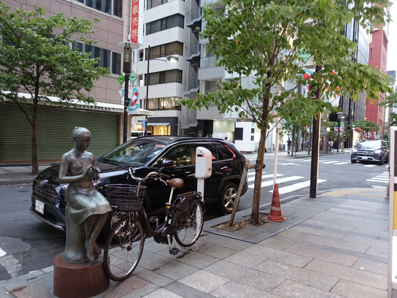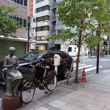 銀座の裏通り「花椿通り」の一画にある像です。中央通りと花椿通りの交差点を少し南東方向に進んだところにあります。この像が設置されたのは平成5年と、思ったよりも新しいものでした。ツバキをもって佇む少女の姿は、なかなか印象深いものでした。