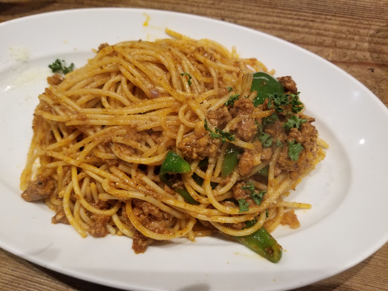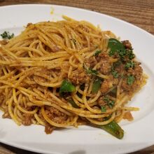 モツナポリタンをオーダー。パスタはすでに茹で上がっているものを利用。ナポリタンは良いがモツはかなり脂があり気持ち悪くなる。