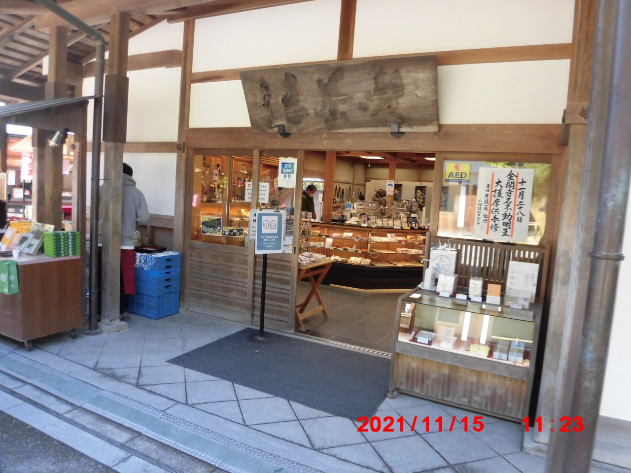 京都市観光で立ち寄りました。金閣寺(鹿苑寺)売店は、不動院を過ぎ、最後の石段を下りきると、金閣寺売店が建っています。比較的小さめの売店で、不動釜茶所と同じ大きな建物内にあります。境内は混んでいたのですが、店内は比較的お客さんが少な目に感じました。
