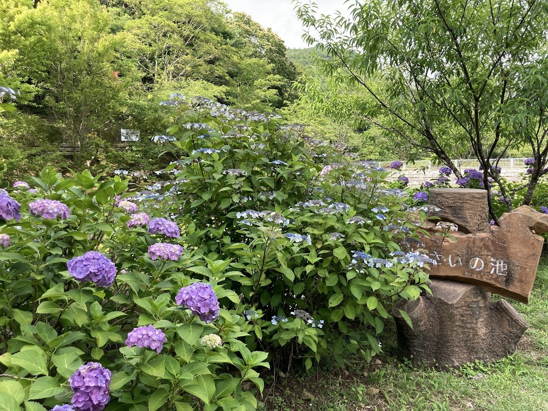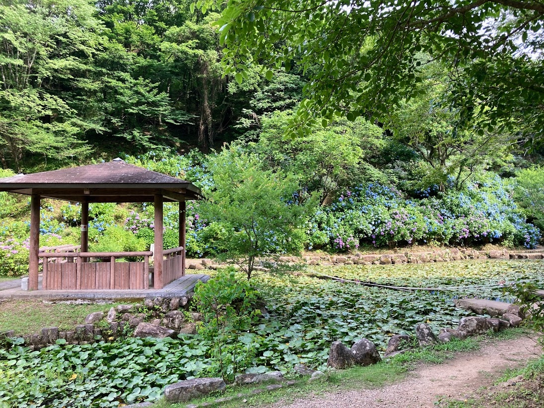 とっても広い公園です。駐車場から、あじさいの池までちょうどいい散策の距離でした。