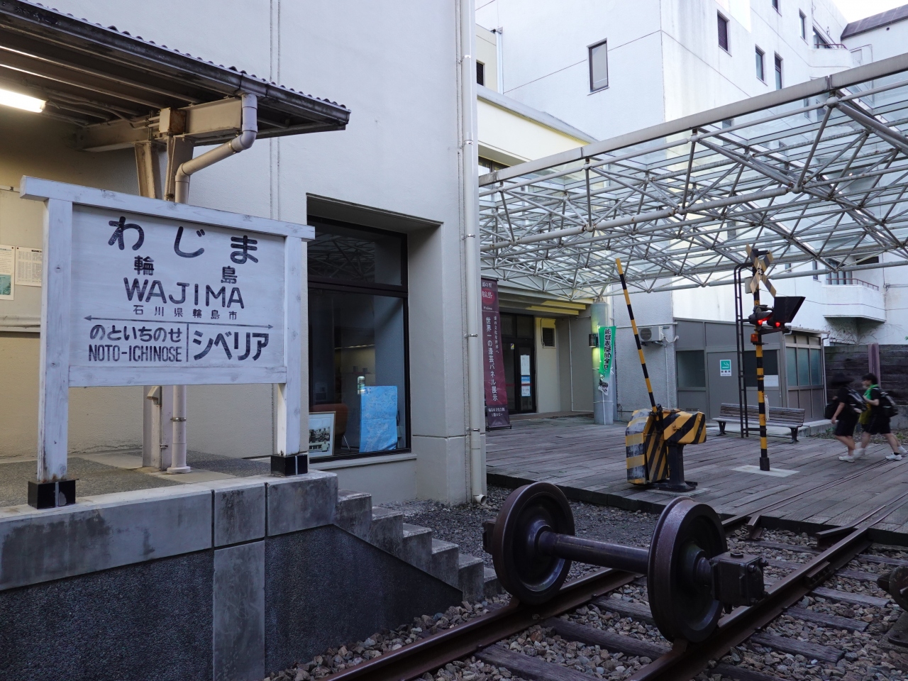 「道の駅 輪島」は、かつての輪島駅だった場所につくられた道の駅で、「ふらっと訪夢(ほーむ)」の愛称で親しまれています。かつて使われていたプラットホームや線路も残されており、鉄道ファンとしては楽しい施設でした。数は多くありませんが、飲食店なども入居しています。