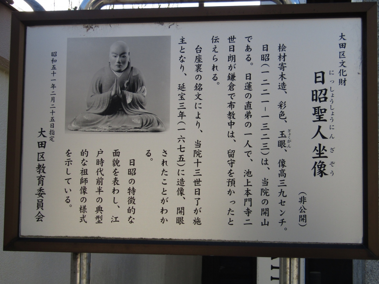 本門寺の西側にある子院で、1282年に日蓮聖人の高弟・日昭上人の庵室として開創された日蓮宗のお寺です。