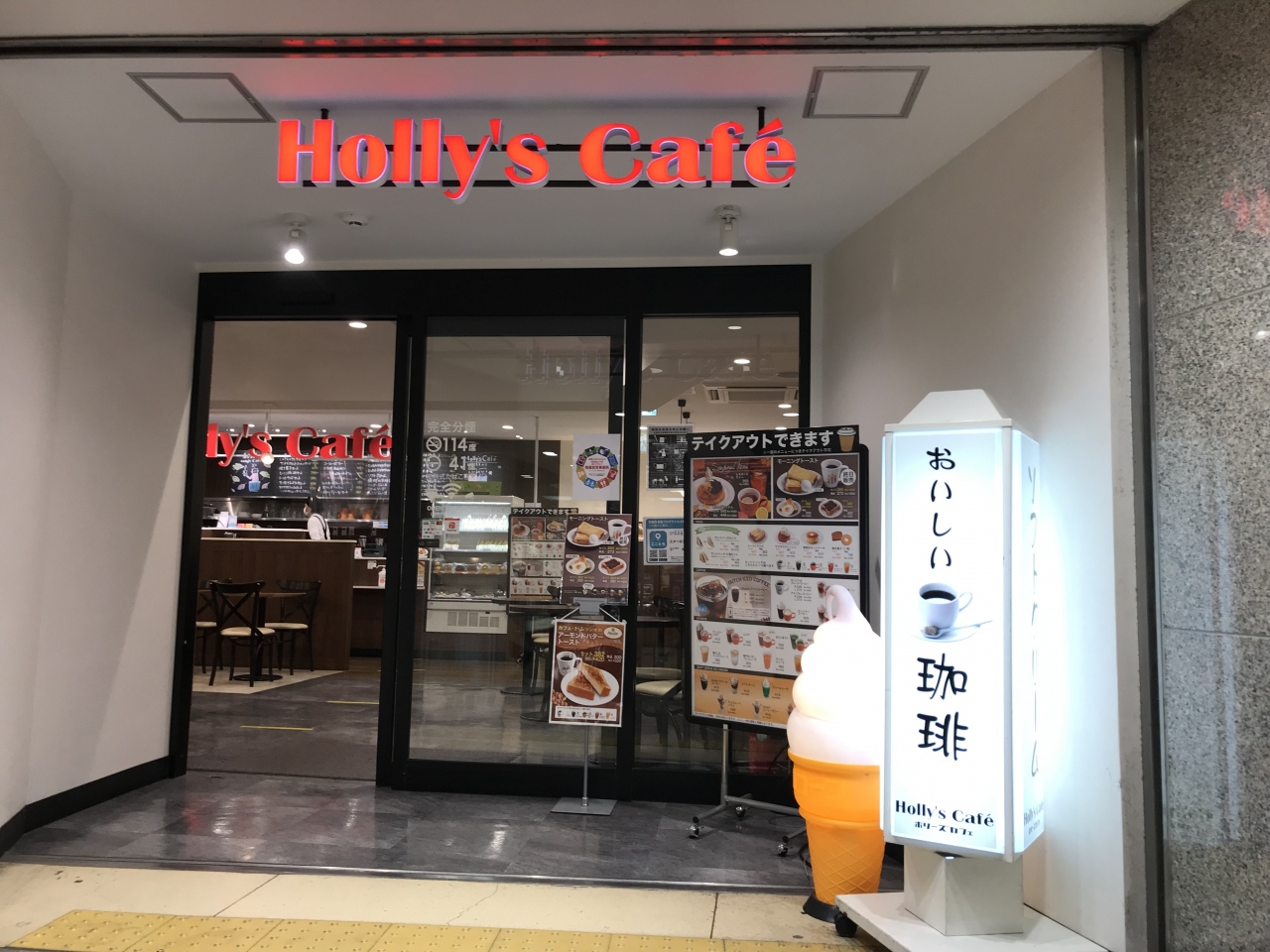 ホリーズ カフェ 河原町駅中央口店は、阪急電車「京都河原町駅」からすぐの場所にあります。店内は、通路を挟んで禁煙部屋と喫煙部屋に完全分離しているので、嫌煙者の私にも安心な店舗構成でした。今回頂いたのは、アイスダッチコーヒーです。ほどよい苦みも感じながら、コクはあるけど飲み口はすっきりとしたコーヒーでした。私はコスパのいいコーヒーと思っています。
