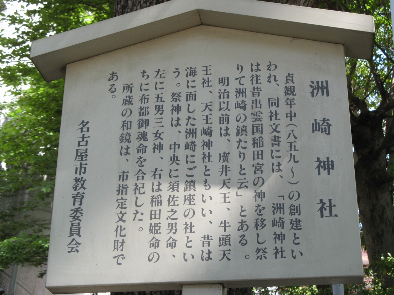 現地にあった由緒書きによると貞観年中(859年~)創建、昔は海に面した洲崎のご鎮座の社で、ご祭神として須佐之男命などをお祭りされているそうです。境内はそれほど広くなく十二支の像や白龍龍壽大神さまなどが祭られています。ビルが立ち並ぶ間にひっそりとたたずむ神社で木々も多く静かで気持ちが休まりました。