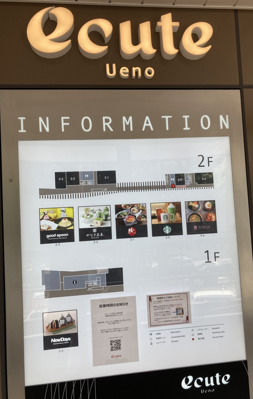 上野恩賜公園にある美術館に行く際に利用しました。1階はJR系のNewDaysがあり、2階にはレストランやカフェが4店舗ほどあります。