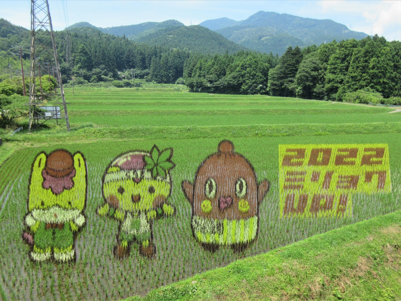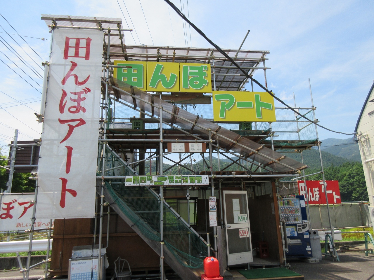 でも、隣の土地に櫓が組んであって、「田んぼアート」の看板がありました。ちょうどこの日がオープンした日らしいです。