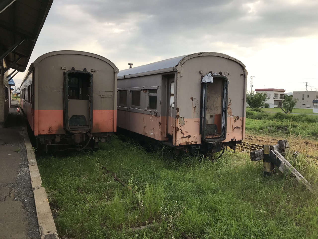 JRとの共用で駅構内は広いが、古い寂れた車両や撤去された線路跡がより一層地方の侘しい駅の風景を醸し出す。