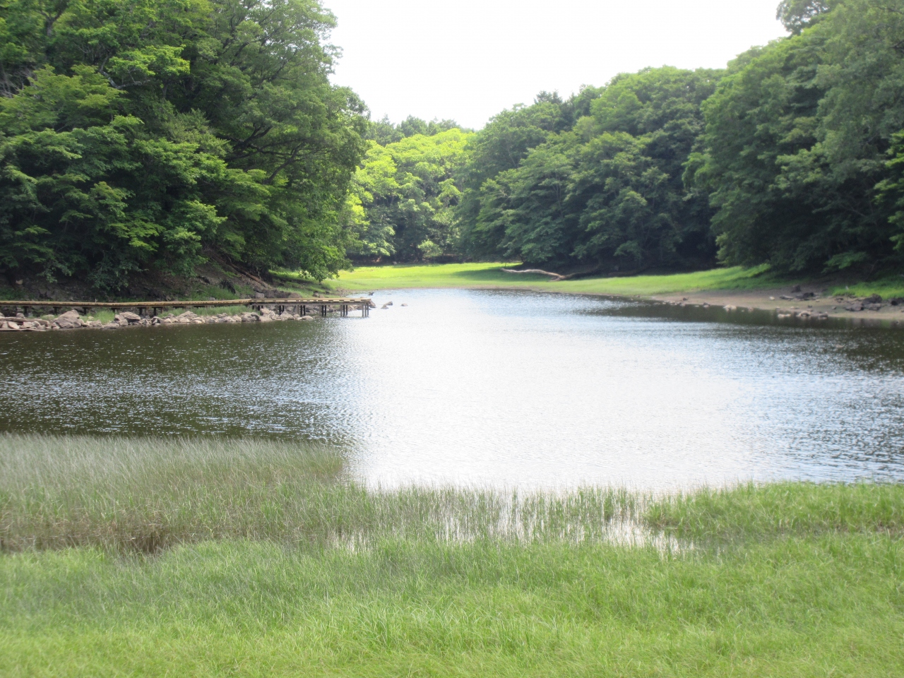 駐車場にはトイレや休憩所も完備されていて、遊歩道も木道が整備されています。大沼湖まで歩きましたが、特に素敵な写真を撮れることはなく、戻りました。途中で「ミズバショウ群生地」の案内があって行ってみました。う~ん、残念ながら緑一色でした。