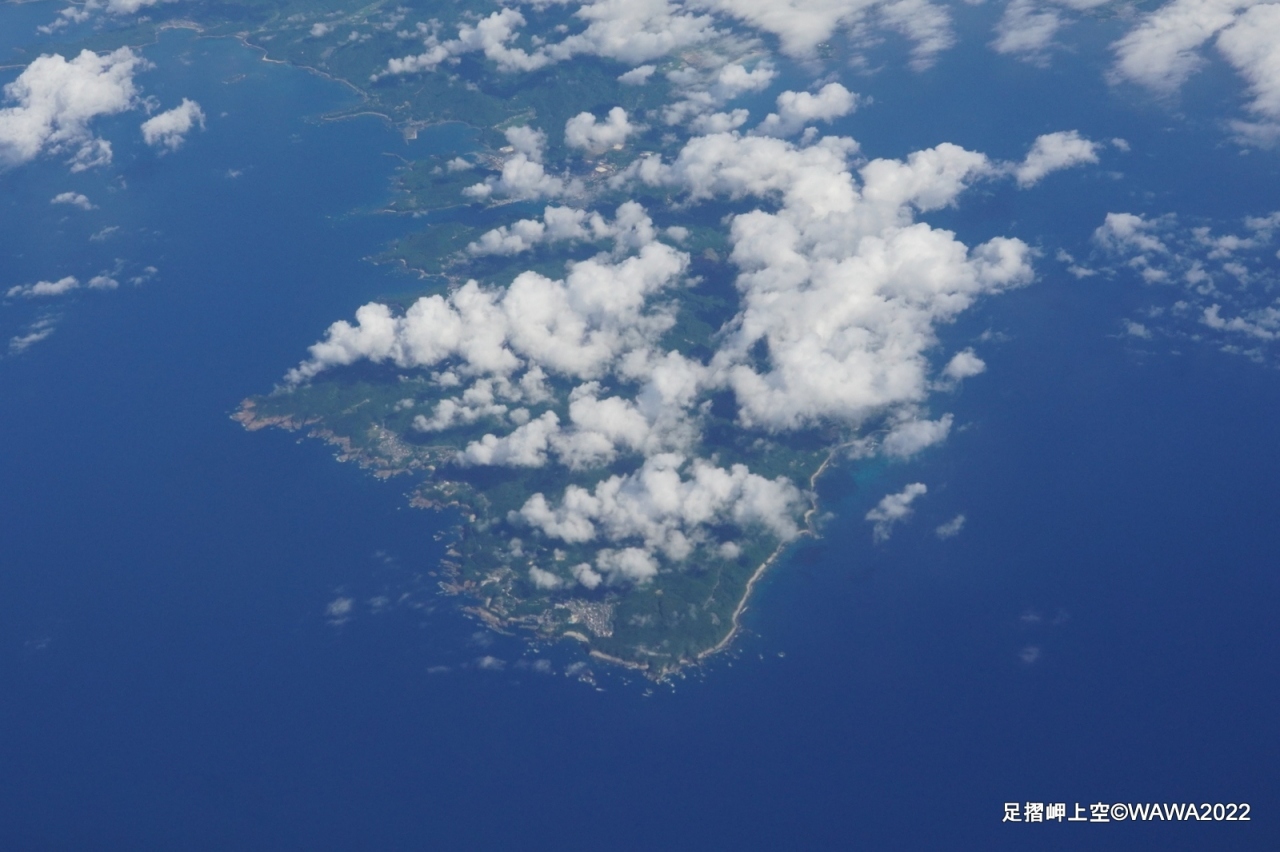 羽田空港から宮崎空港へ向かう途中の飛行機から、室戸岬に続き天候と座席位置に恵まれ四国南西端から太平洋に突き出した足摺岬を撮影することが出来ました。